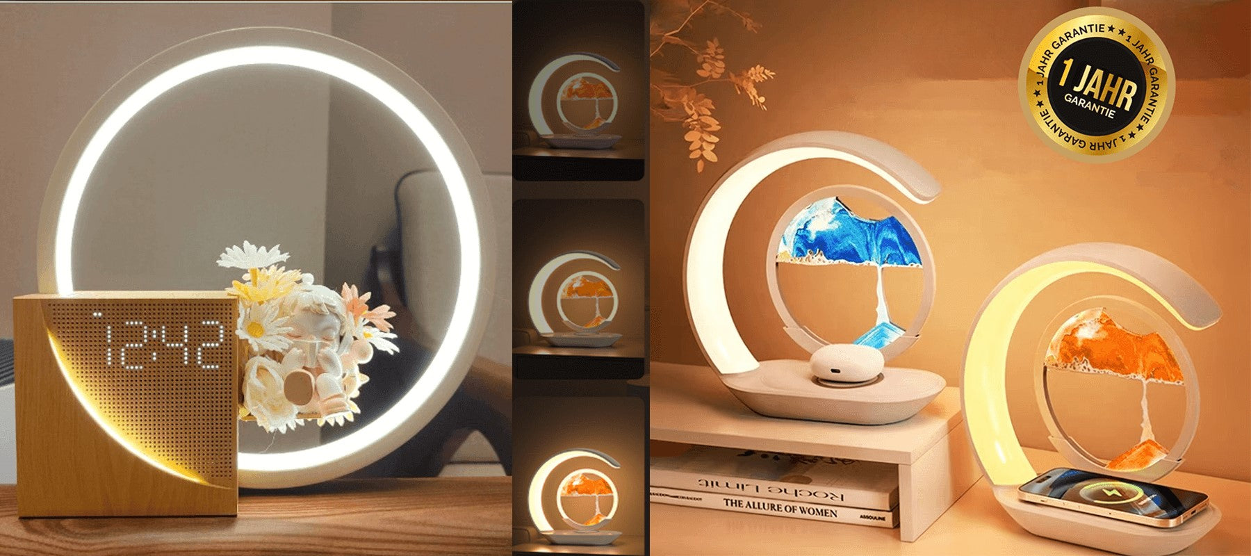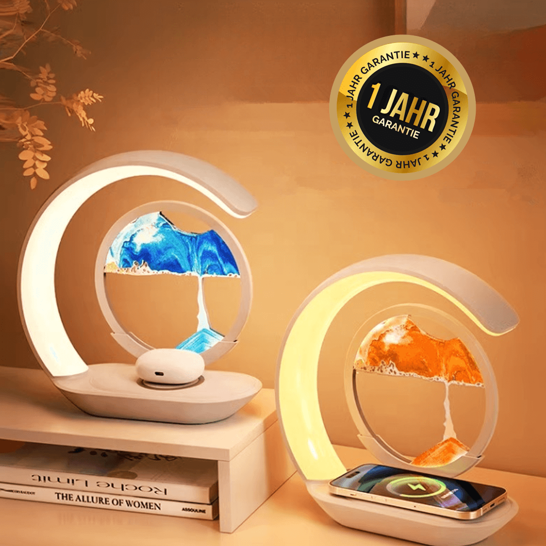 Fuvaya LED-Tischlampe - Innovative 3D-Sanduhr mit kabelloser Ladefunktion und LED-Nachtlicht