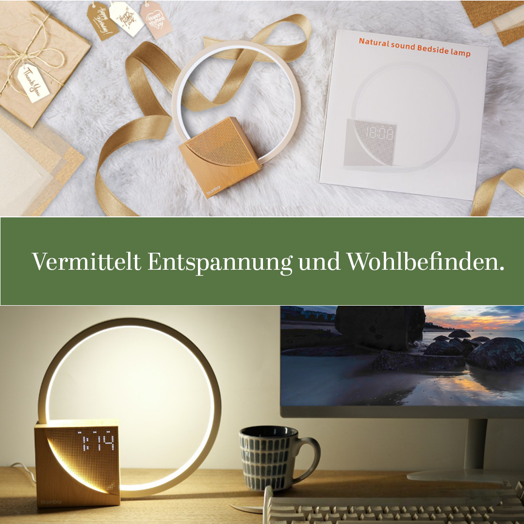 Das elegante Holzdesign kombiniert mit dem futuristischen LED-Ring passt perfekt in jedes Schlafzimmer oder Büro- ein echter Blickfang mit Funktion.